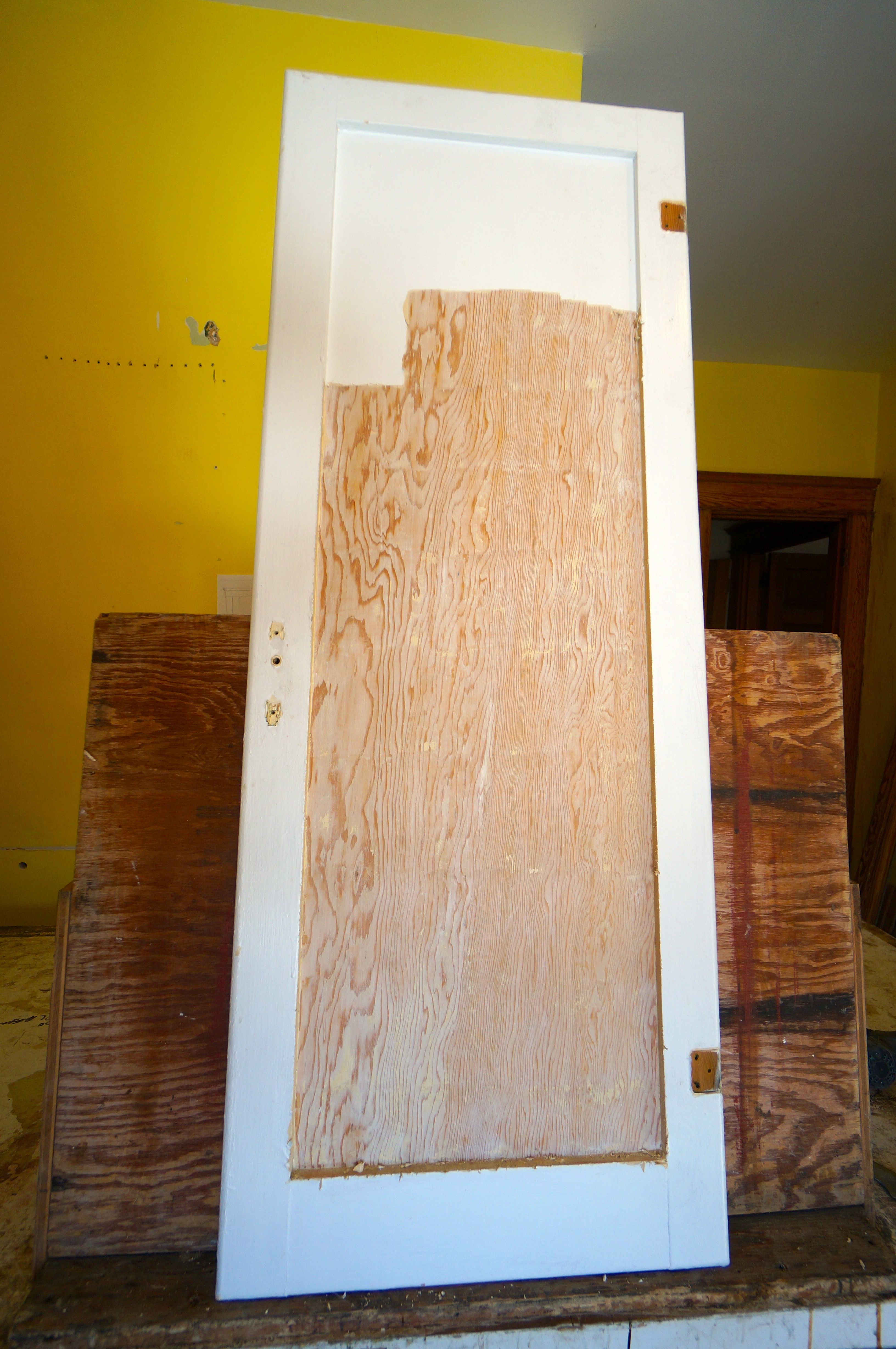 Curiosity got the best of me! Had to strip it to see what was hidden underneath… a beautiful pine door. I’ll leave the frame and bathroom trim painted, but happy to have the door natural.