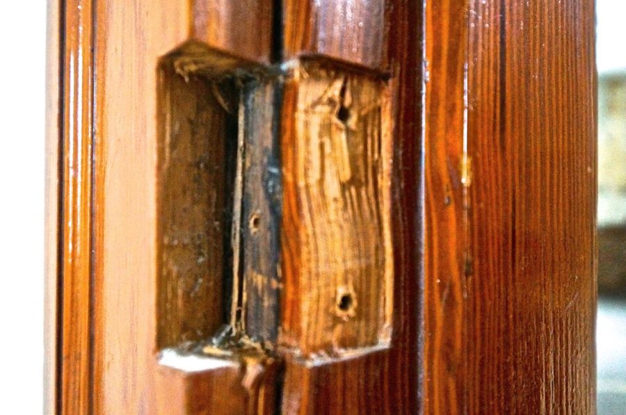 After the lock’s struck plate is removed: not pretty!